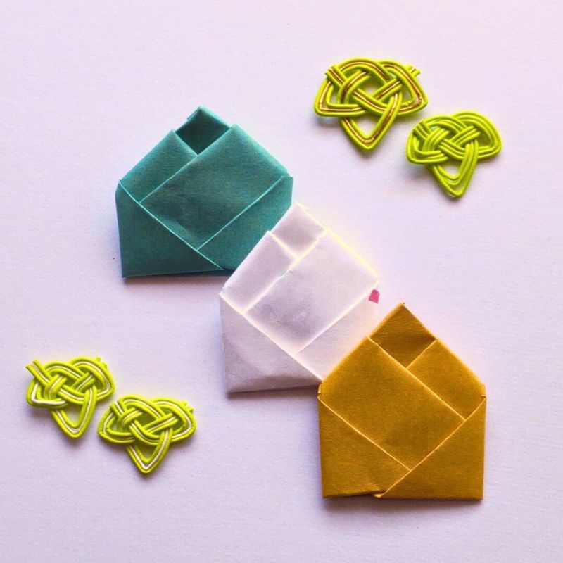 実際はA4やB5サイズの用紙を使いますが、おりがみで作りました。