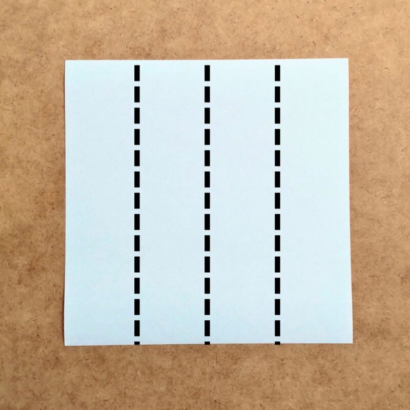 はじめに縦に四つ折りにして、折り目をつけます。