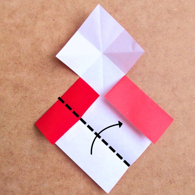 次に、点線のように折り目をつけて戻します。