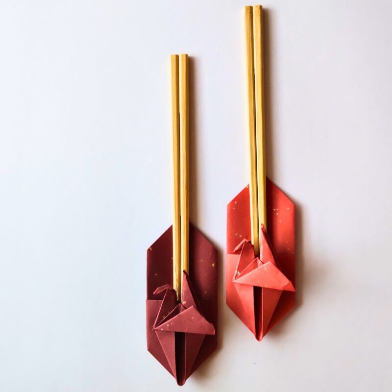 鶴が羽ばたいている箸袋は、箸を出したら箸置きとしても使えます。