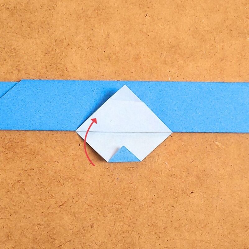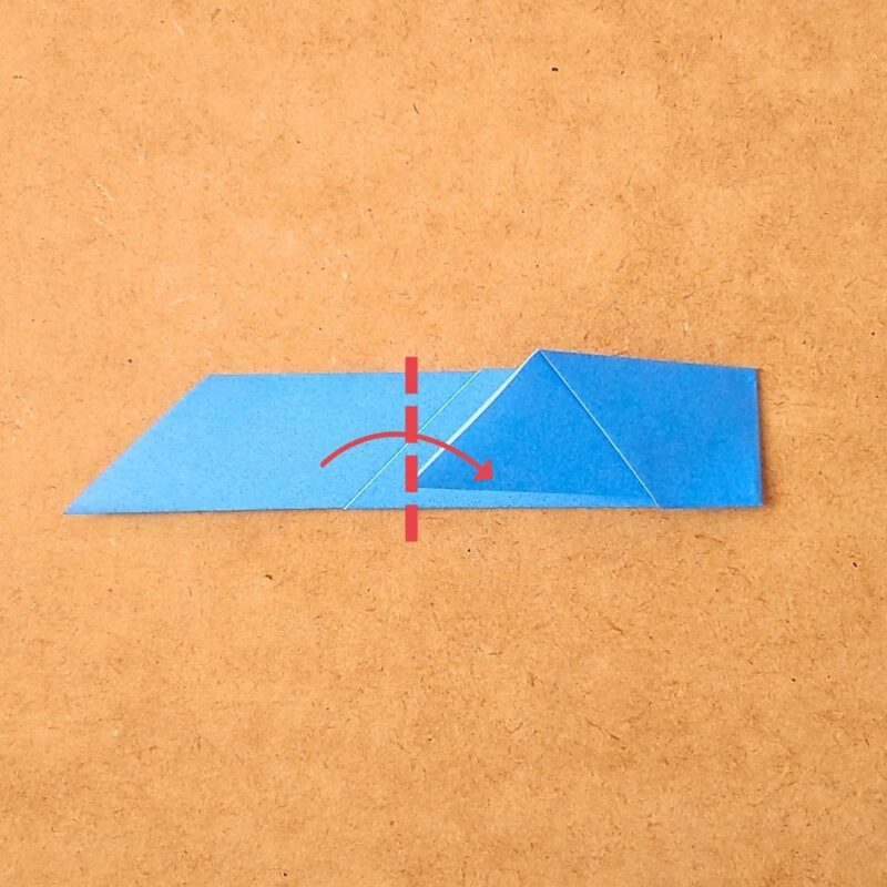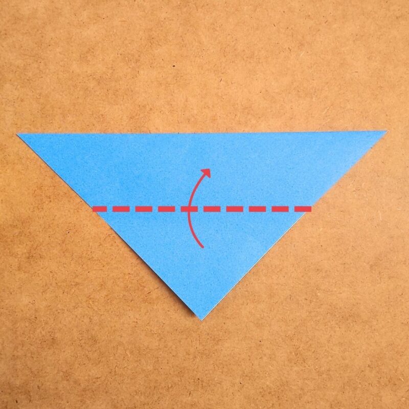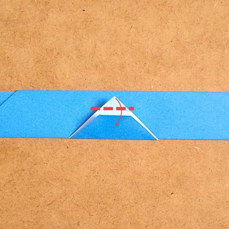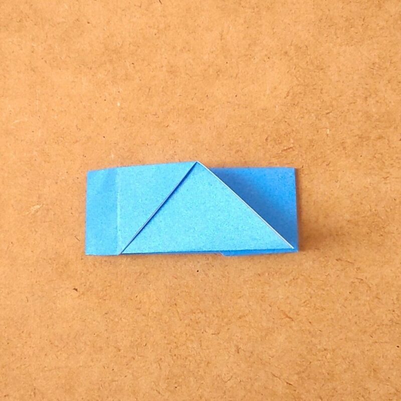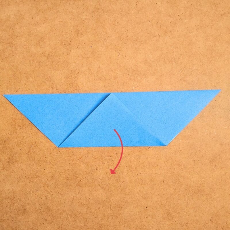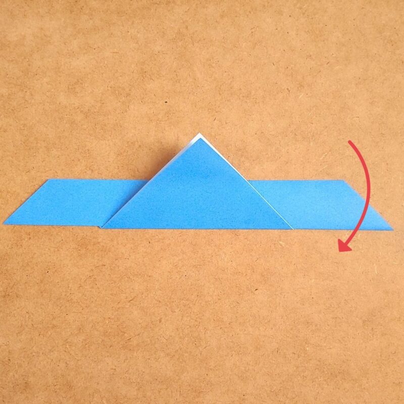 そして、半分の折り目に合わせて折り、下の三角を上に折ります。