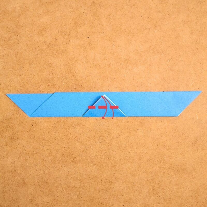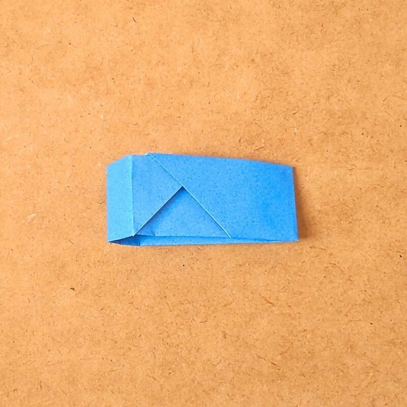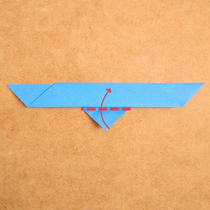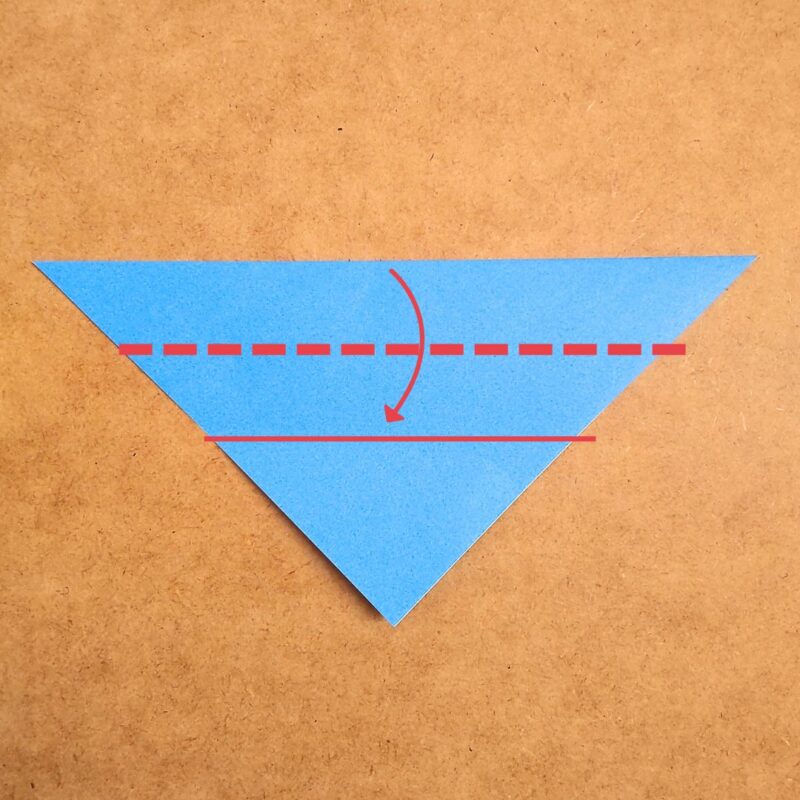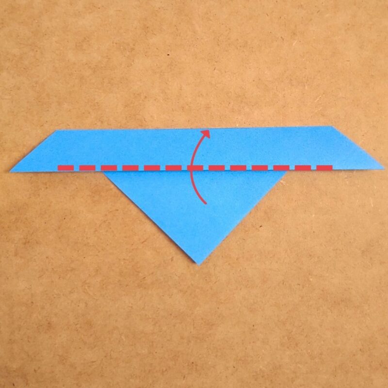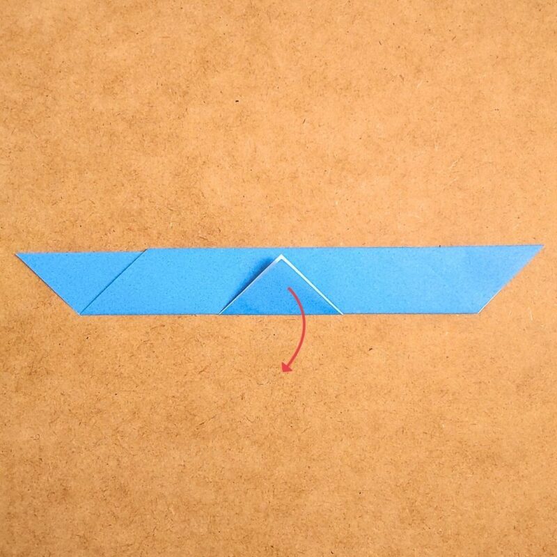 そして、半分の折り目に合わせて折り、下の三角を上に折ります。