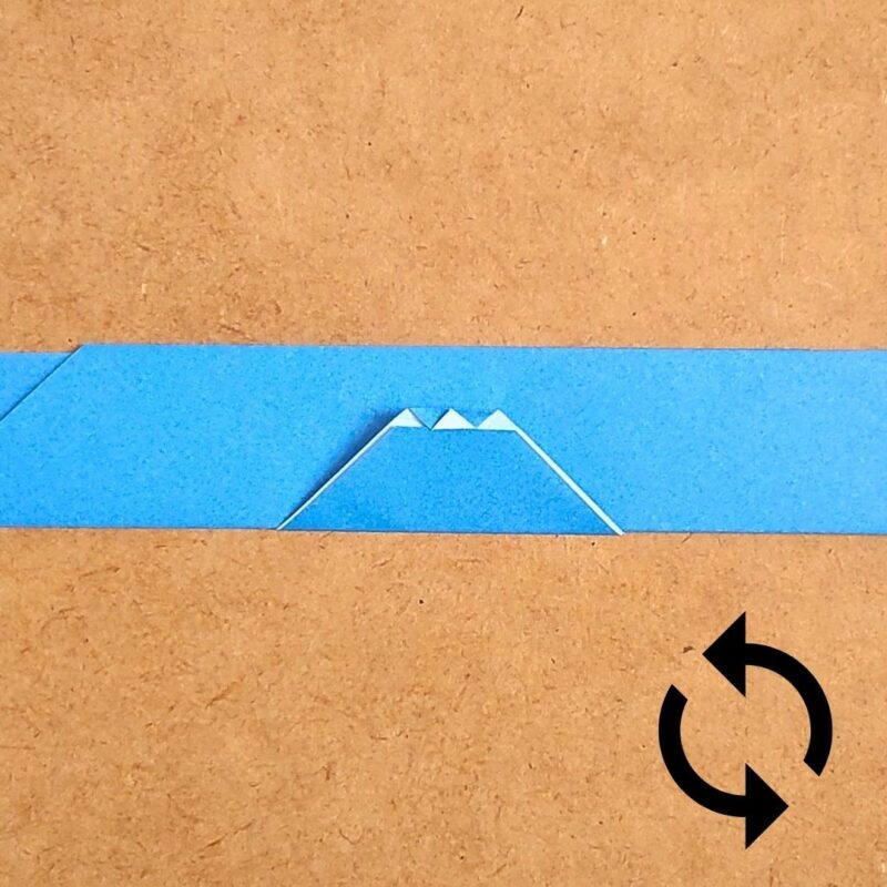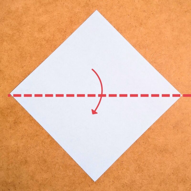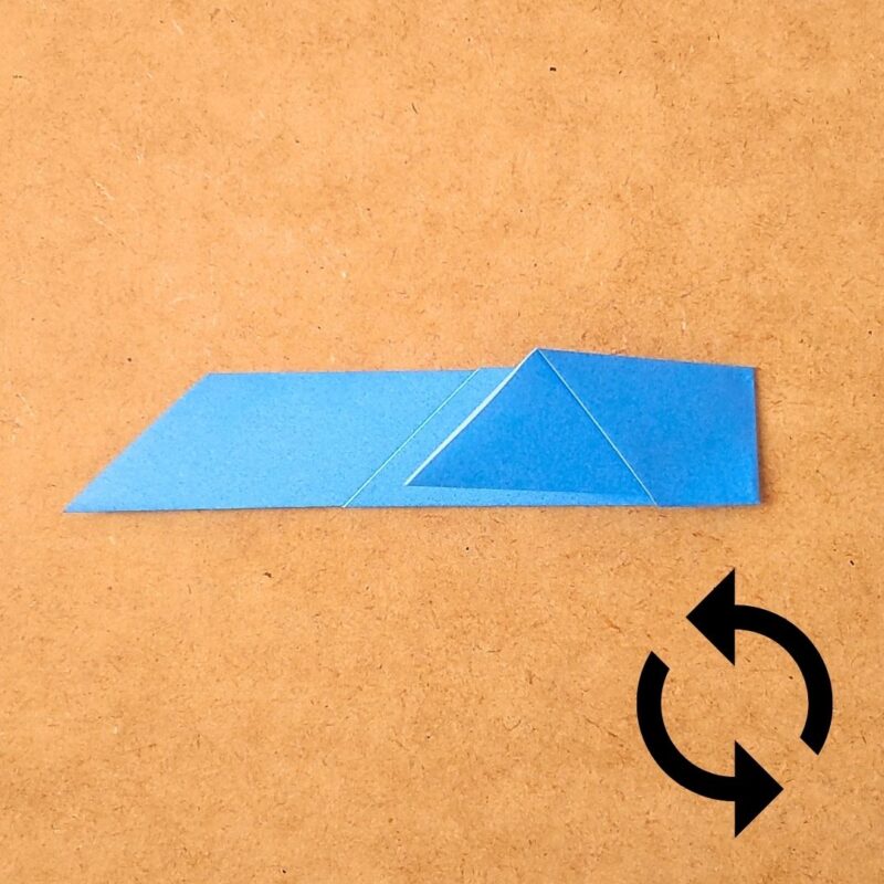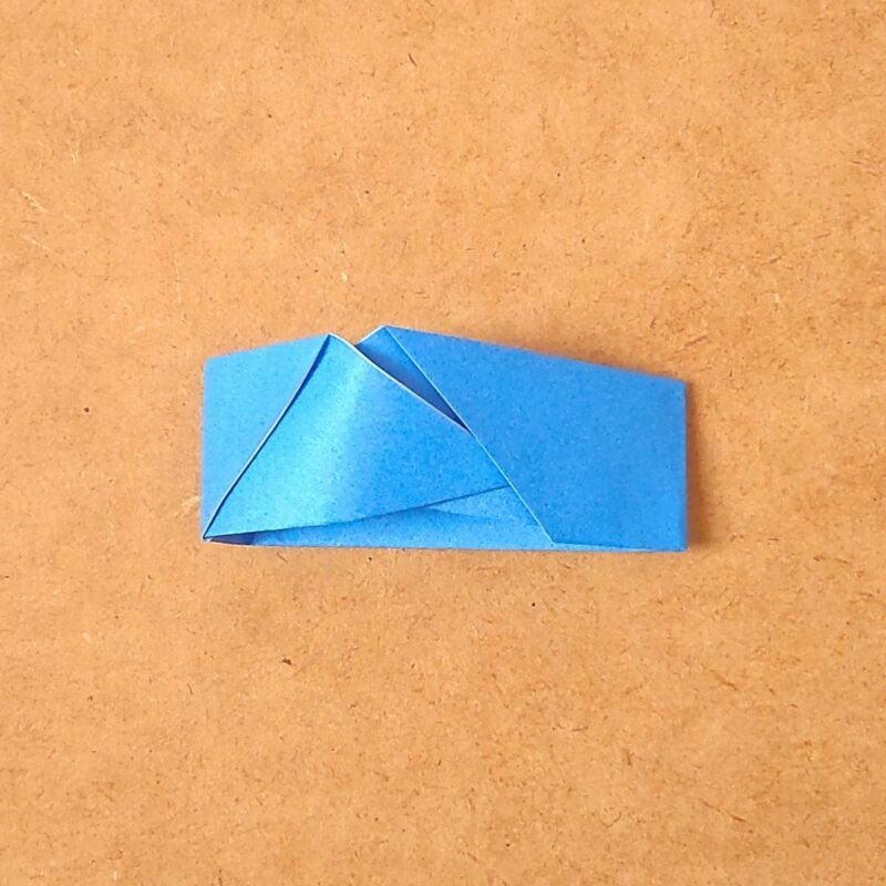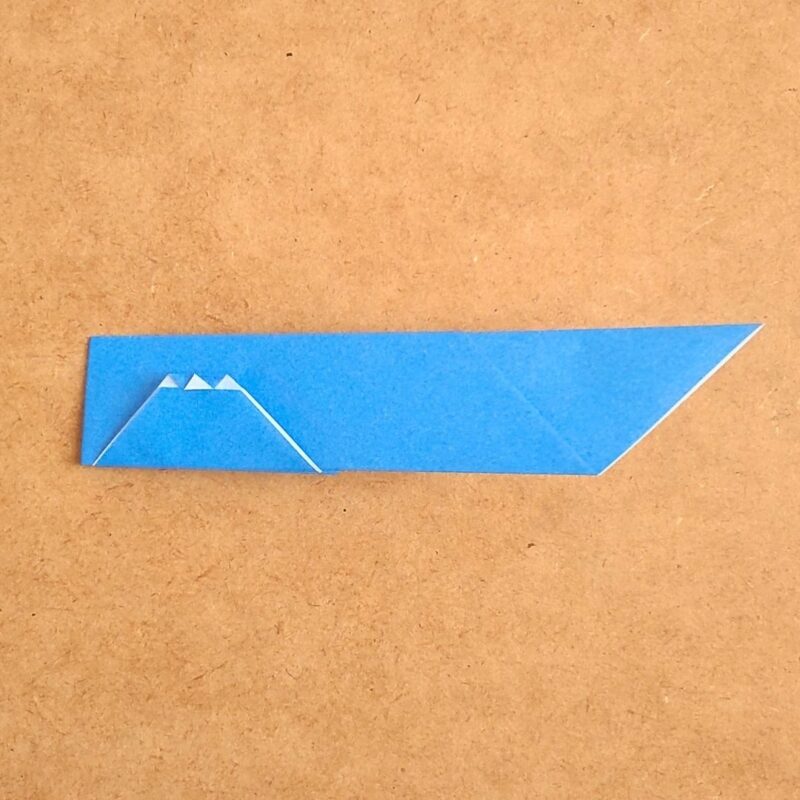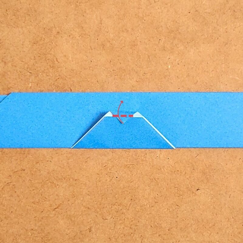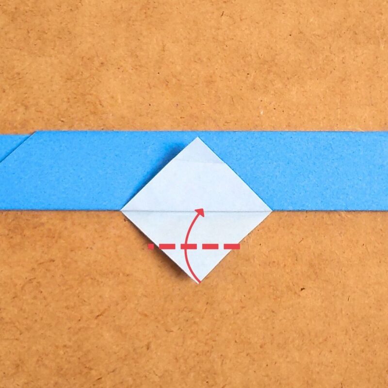 そして、半分の折り目に合わせて折り、下の三角を上に折ります。