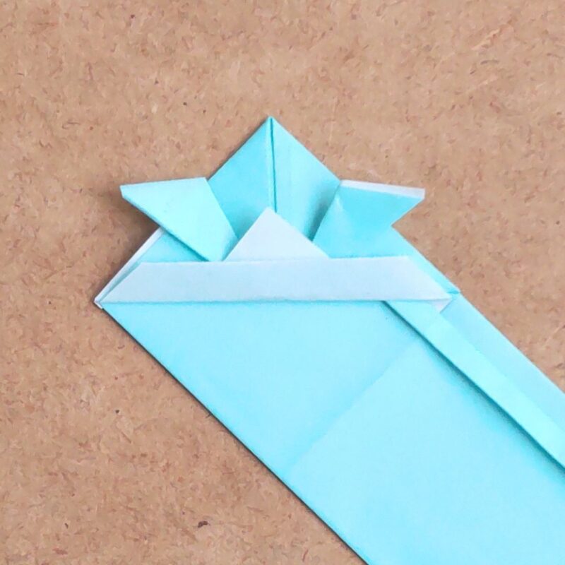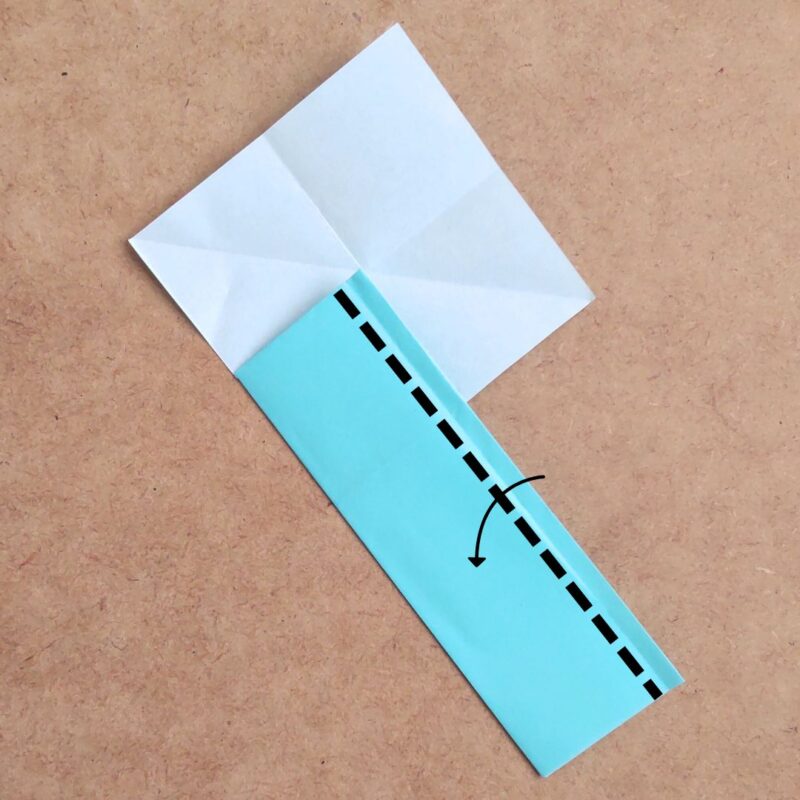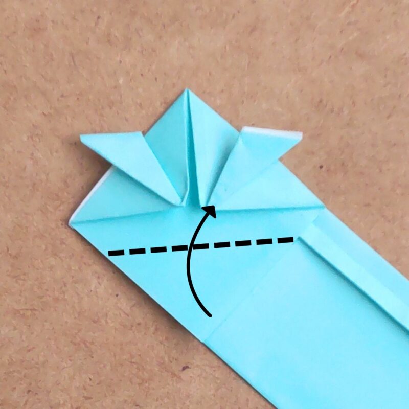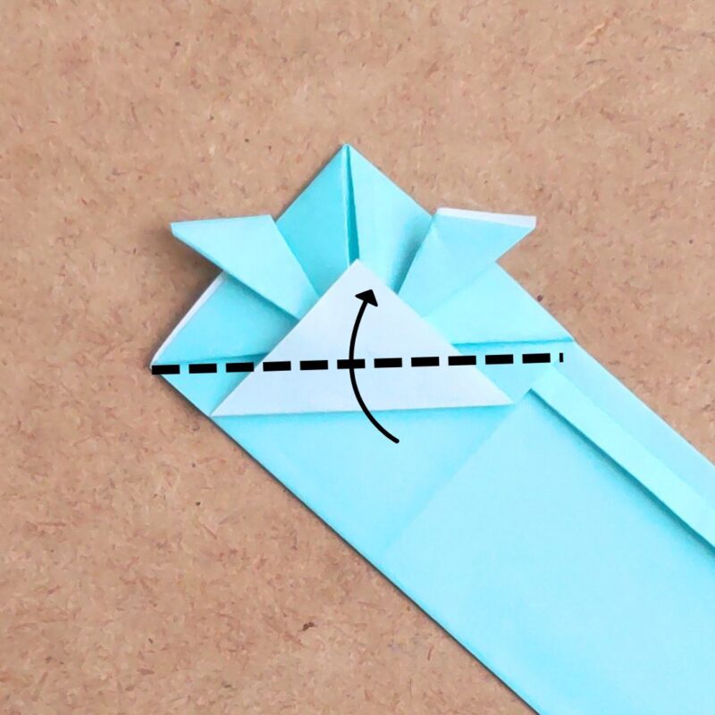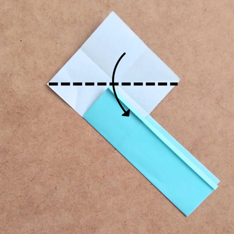 下の三角を中心よりも下で折り上げます。