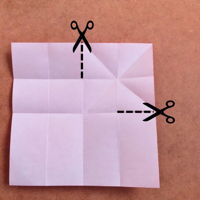 次に、点線の部分を二か所切込みを入れます。