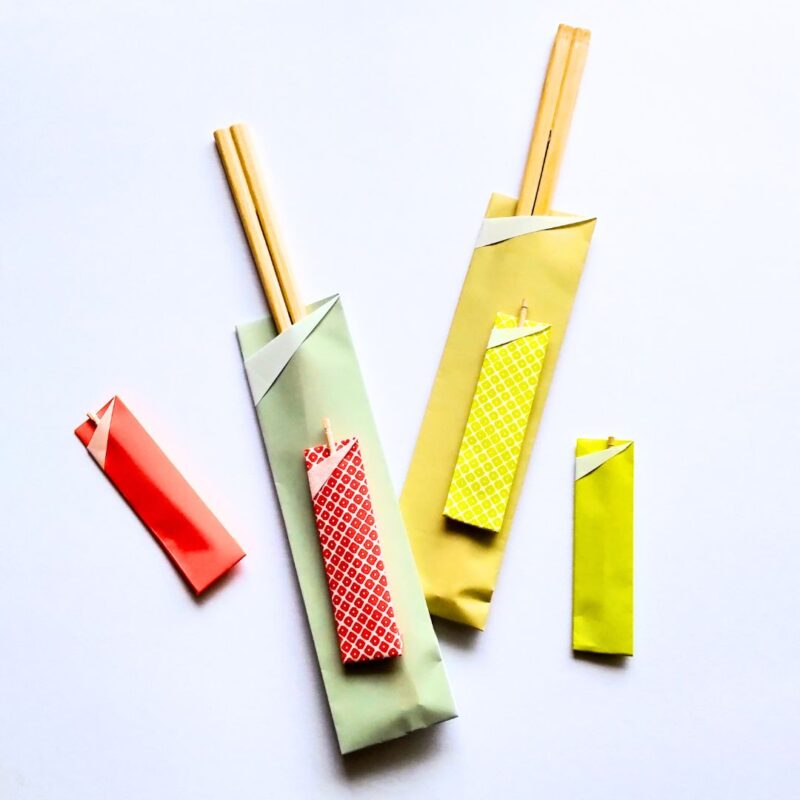 箸袋を小さく折ると、つまようじを入れるのにちょうどいい大きさになります。