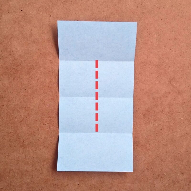 はじめに半分に折って、さらに半分に折り目をつけます。