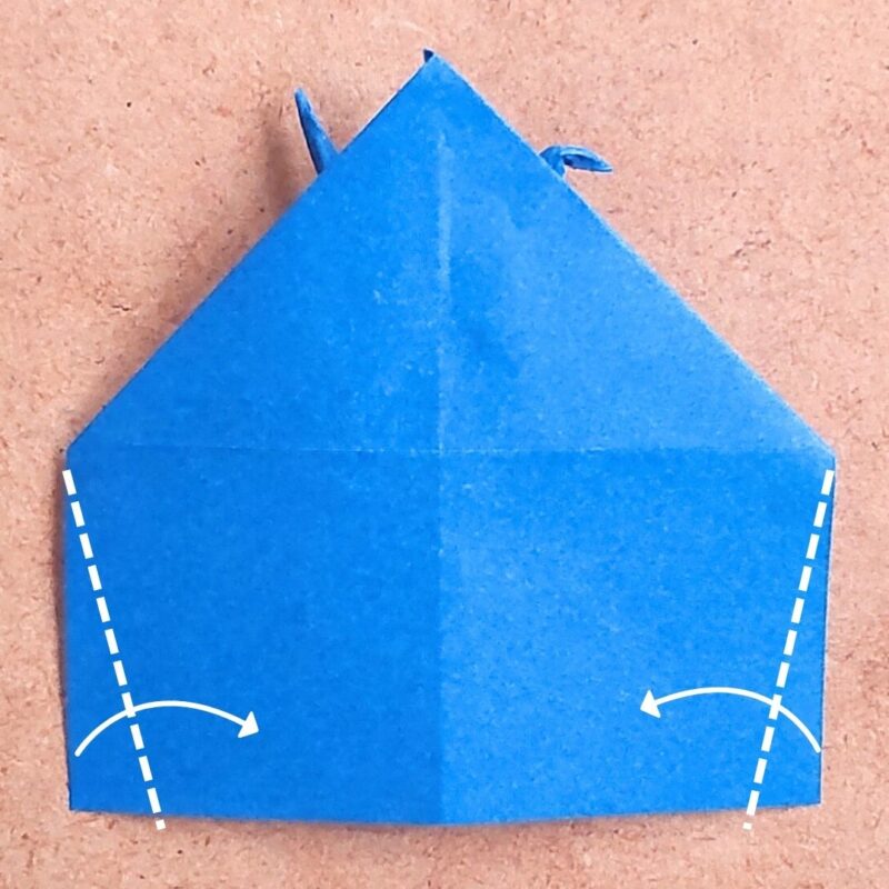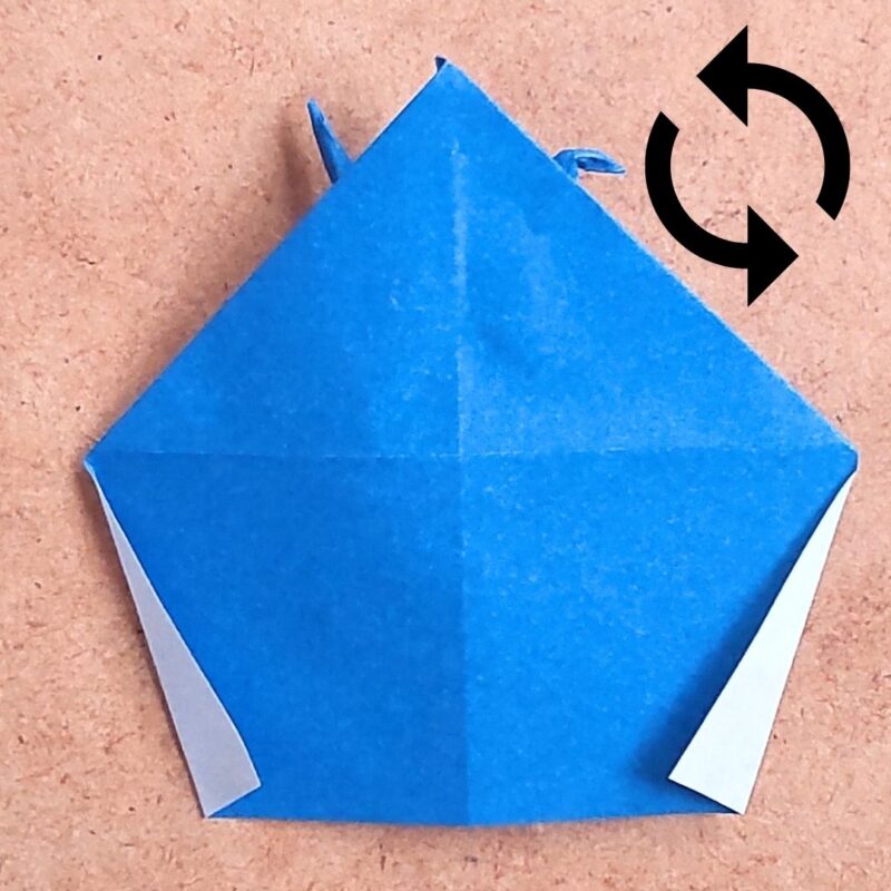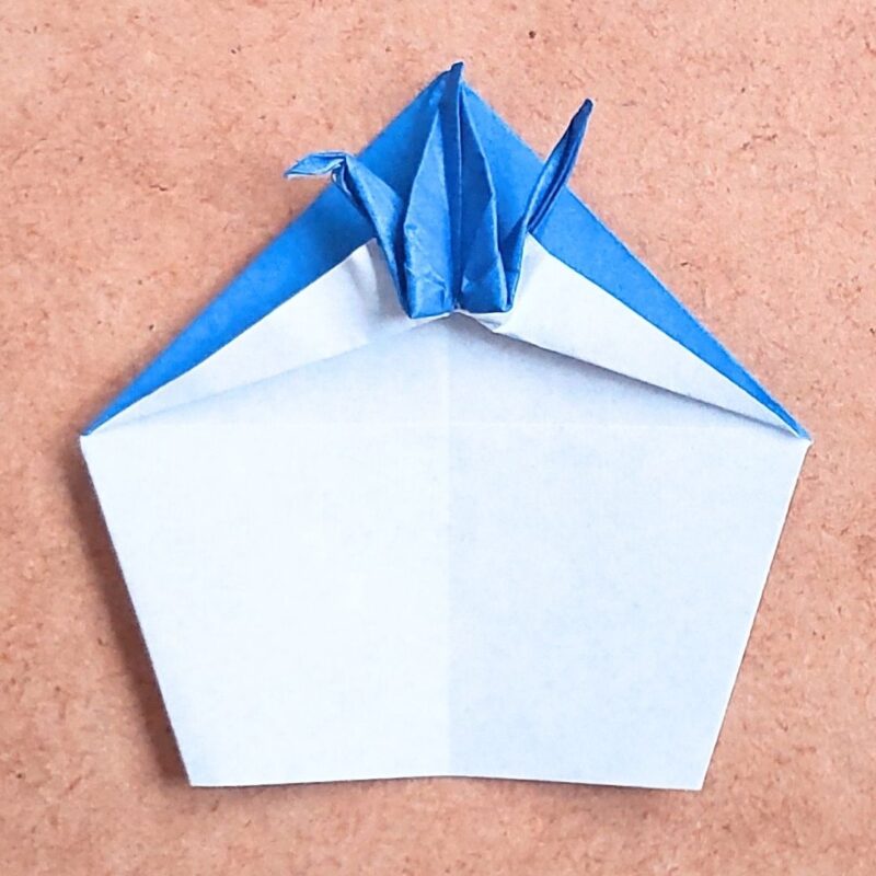 ここからは鶴を折るのですが、おりがみが二重になって少し折りにくいです。