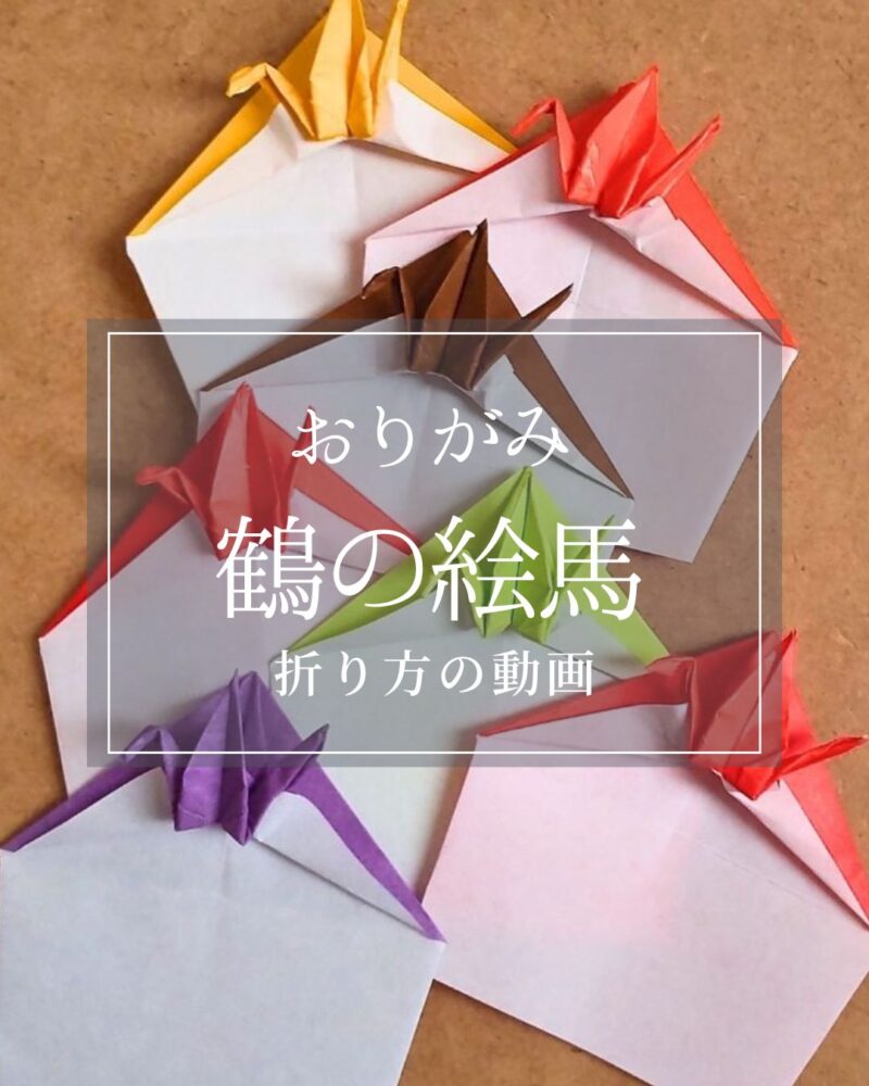 おりがみで鶴の絵馬を作る方法を紹介します。