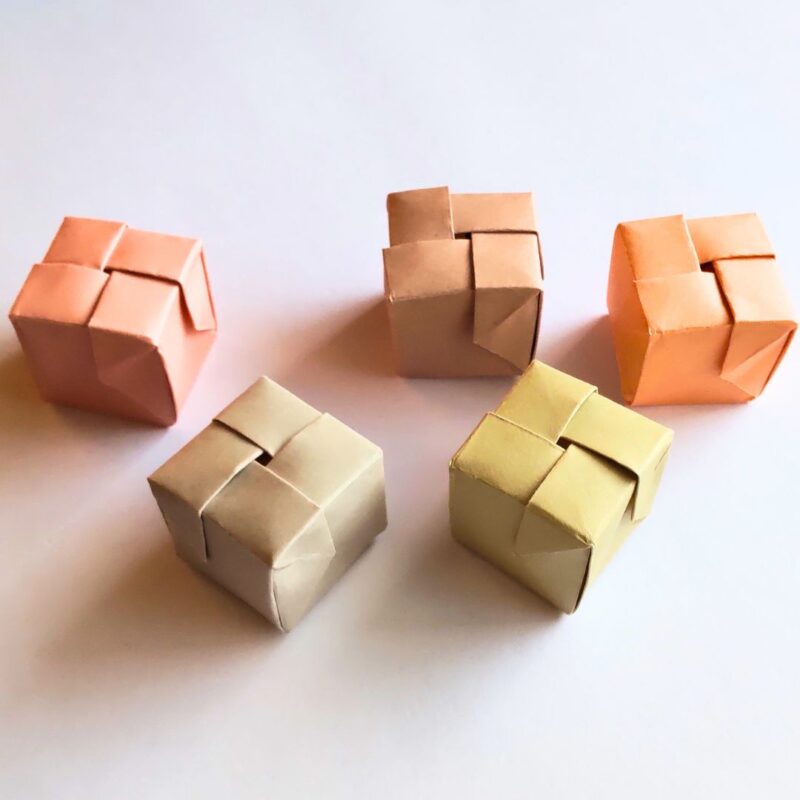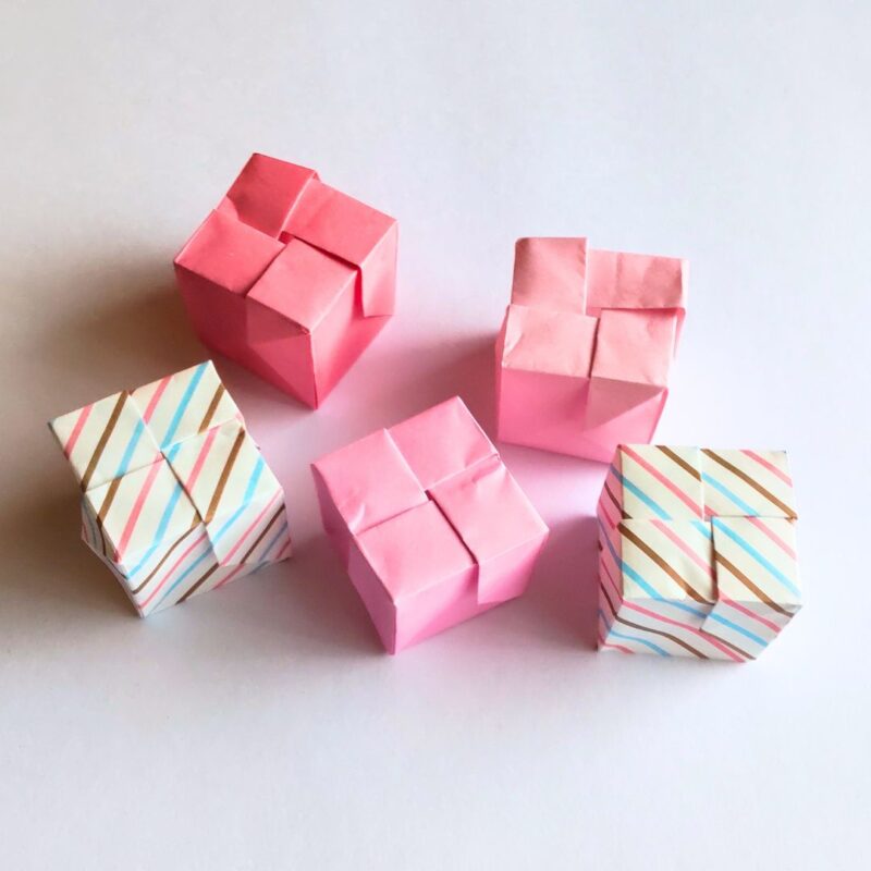 こちらもさいころ型なのですが、一枚で折れるところを半分に分けて折っています。