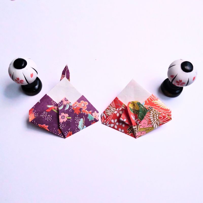 このおりがみのすごいところは一枚で雛の持つ扇やしゃくを作れるところです。