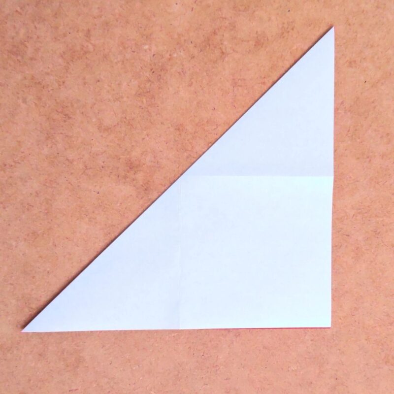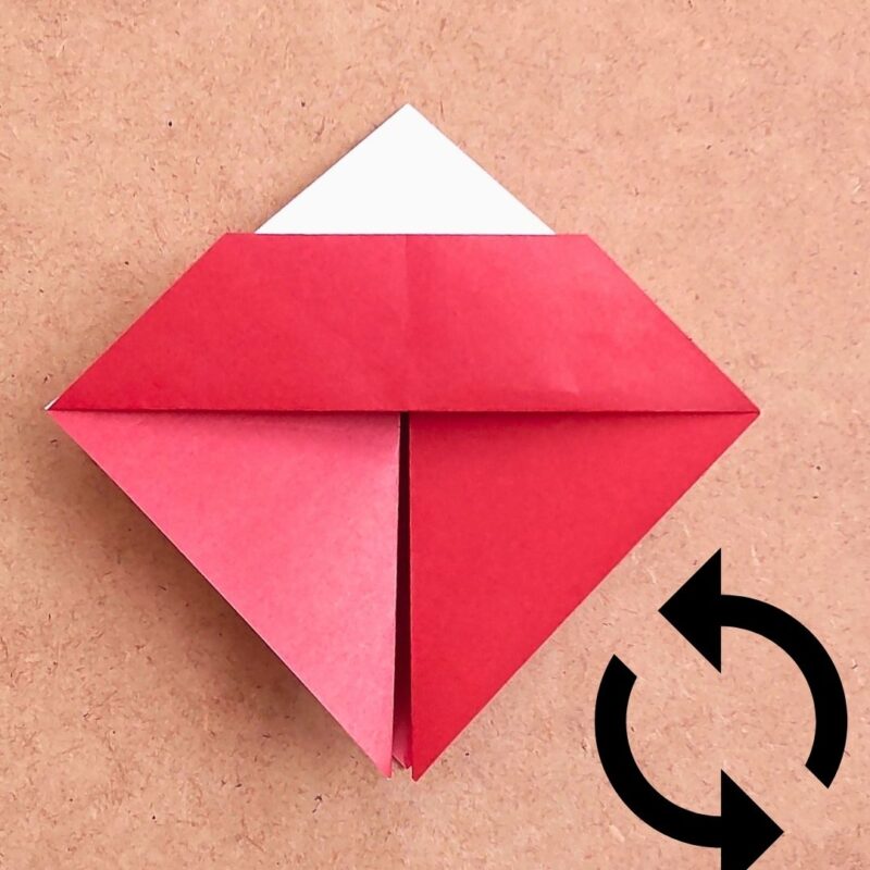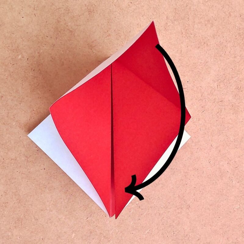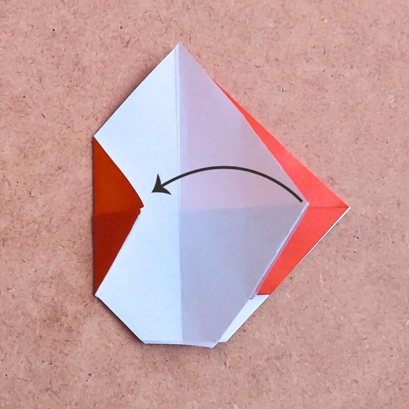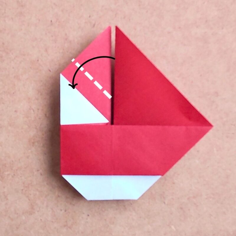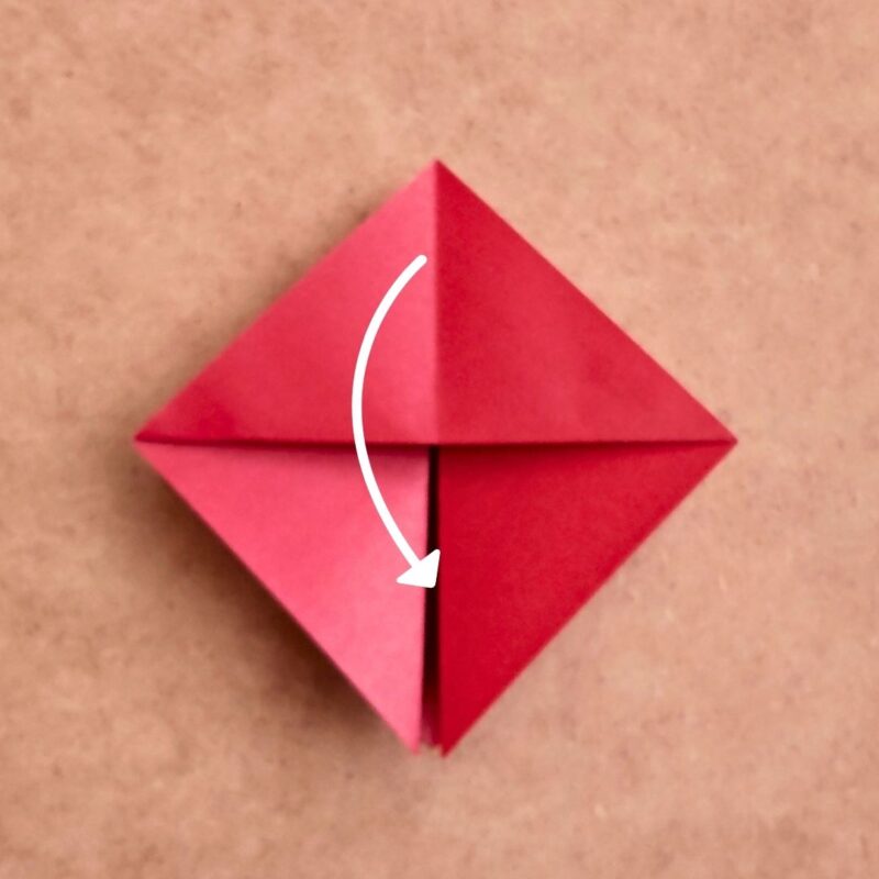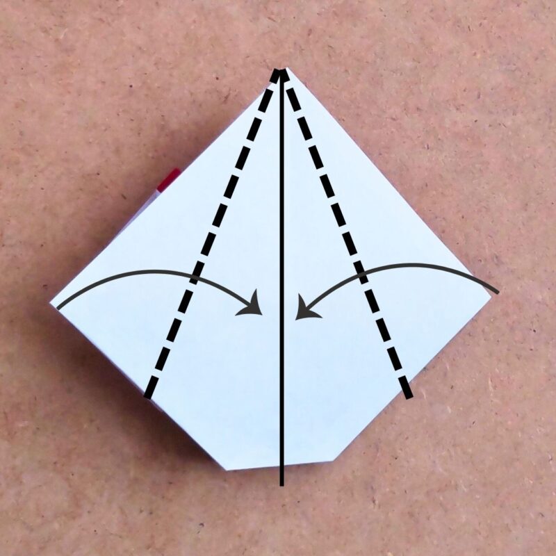 そして、左側の角を中心に合わせて折り、右側を戻します。