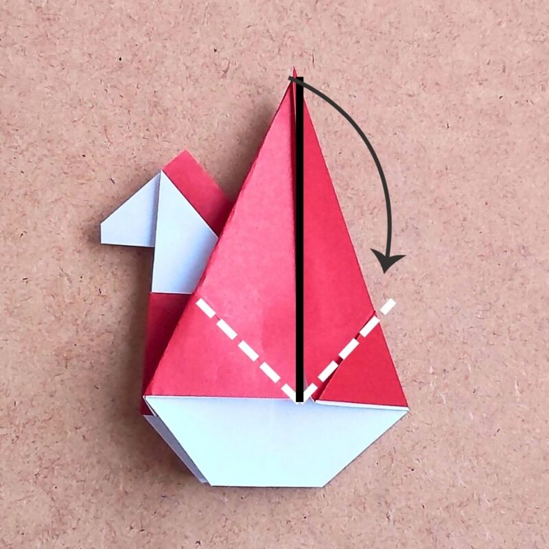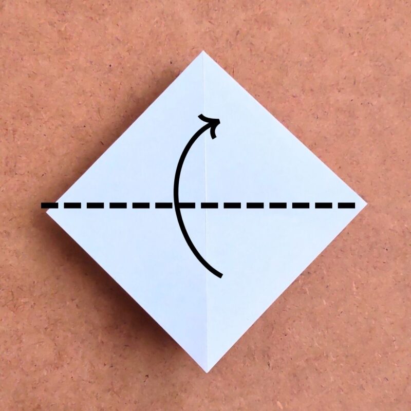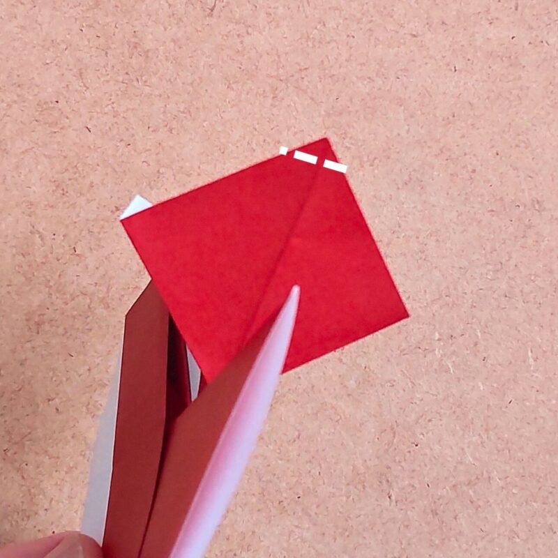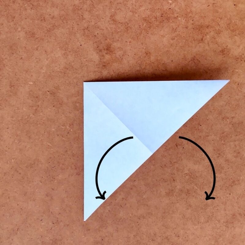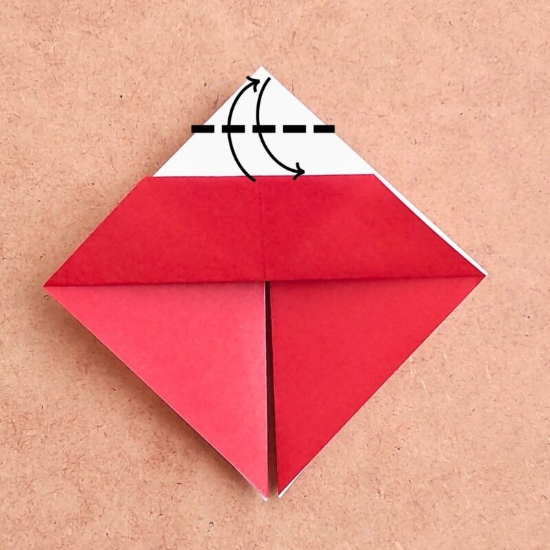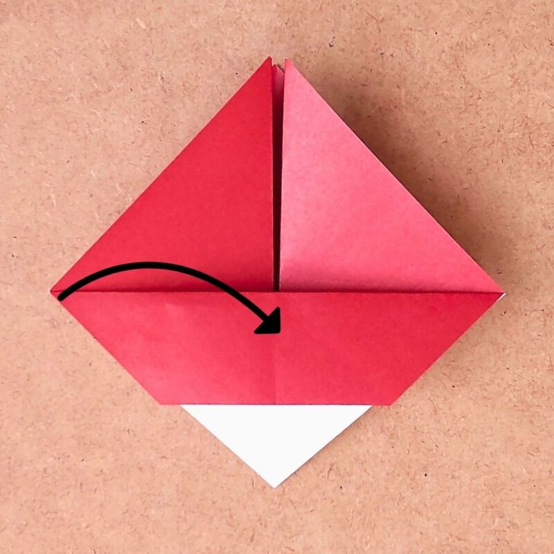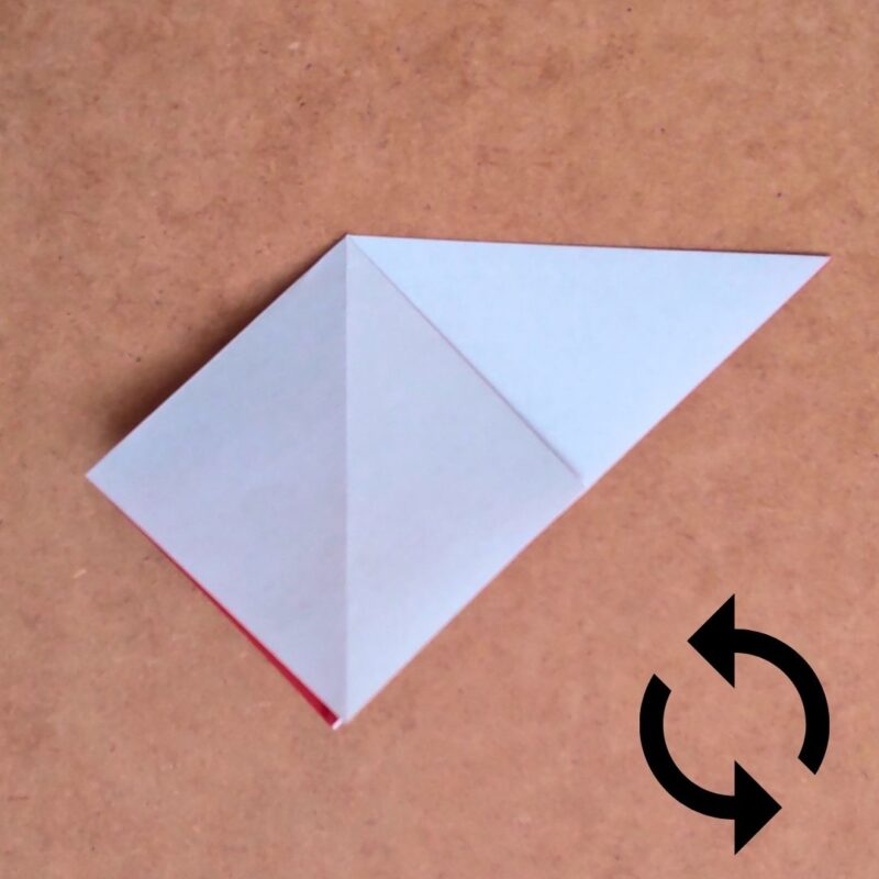 そして、左側の角を中心に合わせて折り、右側を戻します。