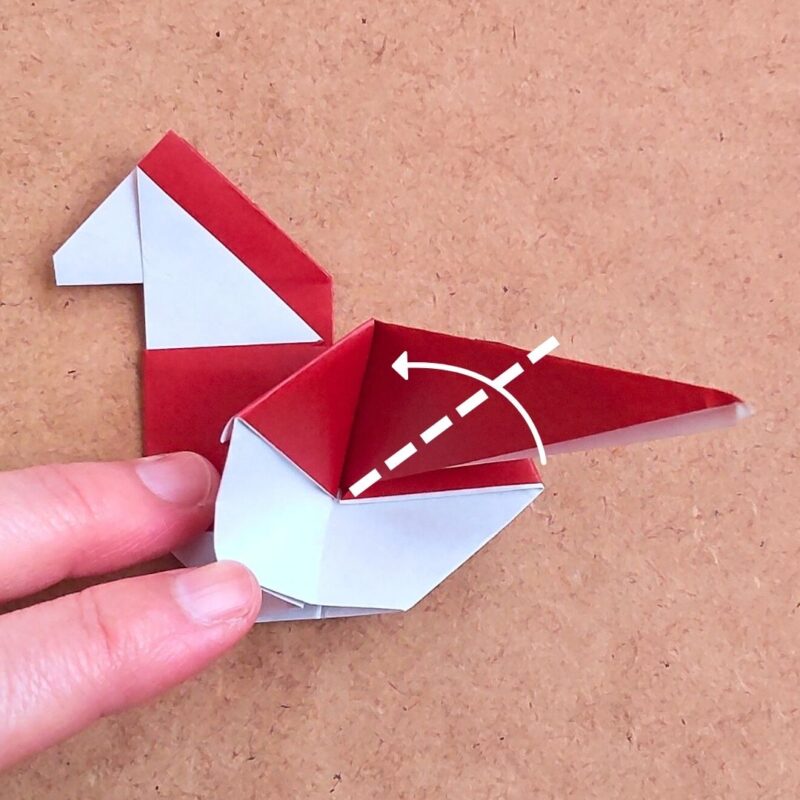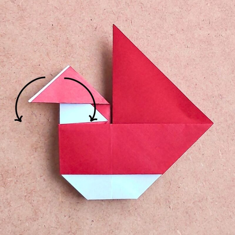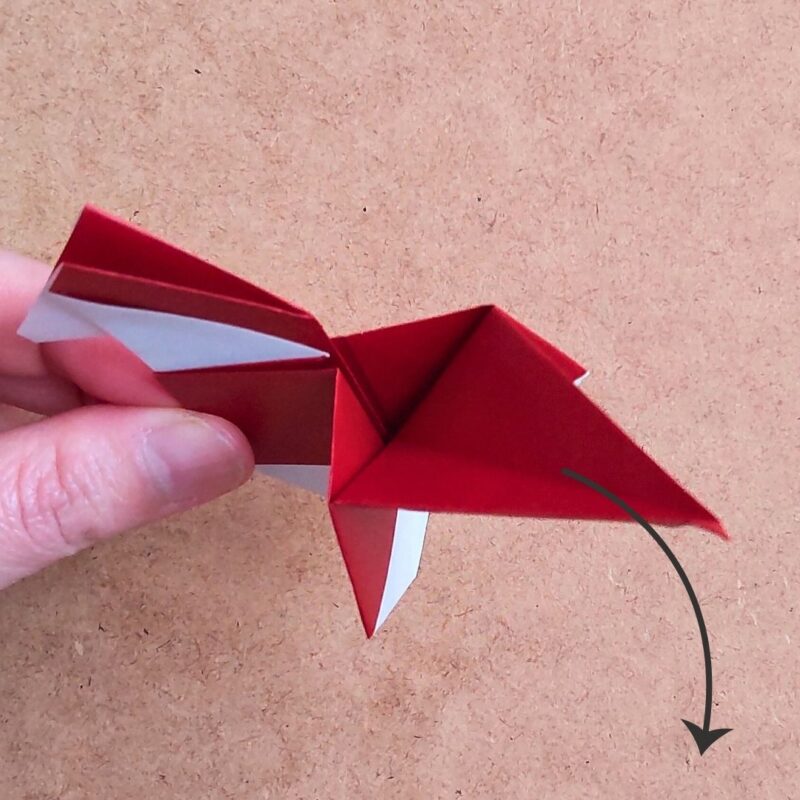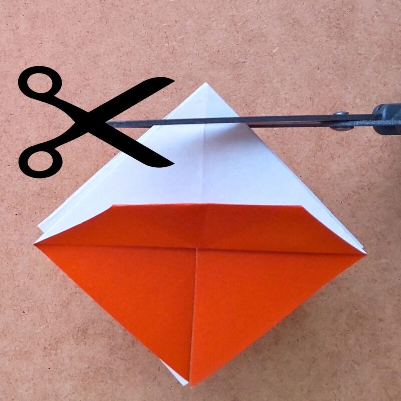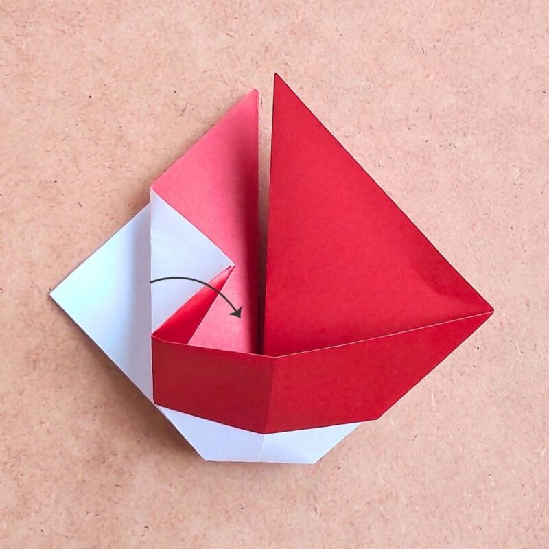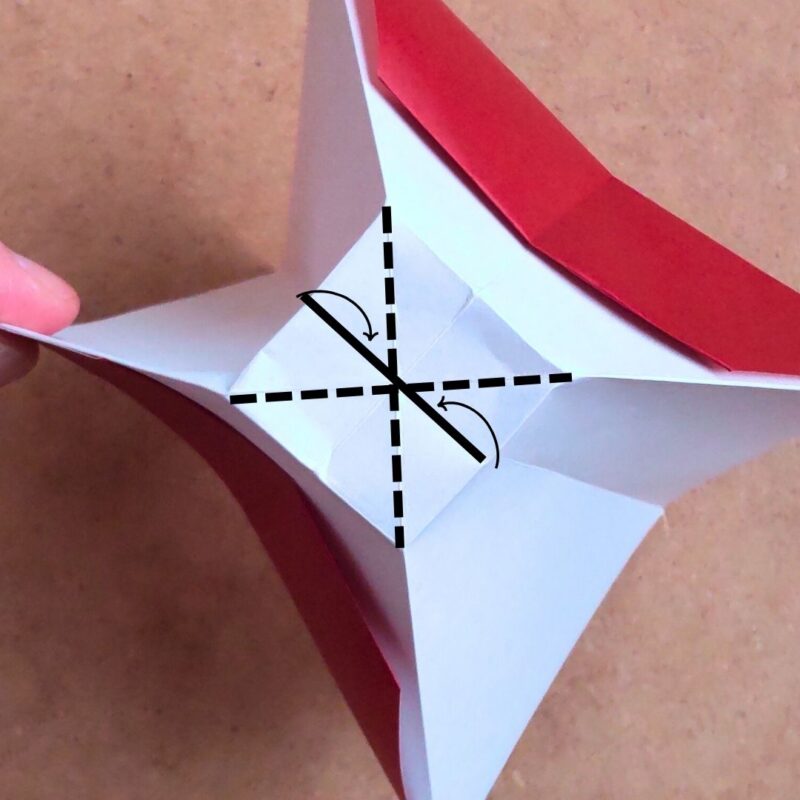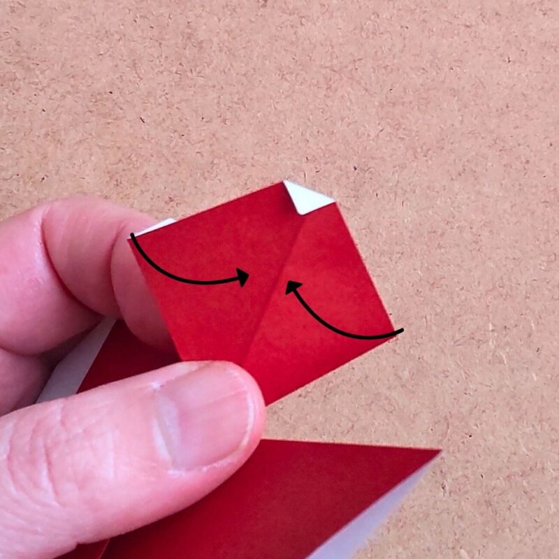 そして、左側の角を中心に合わせて折り、右側を戻します。