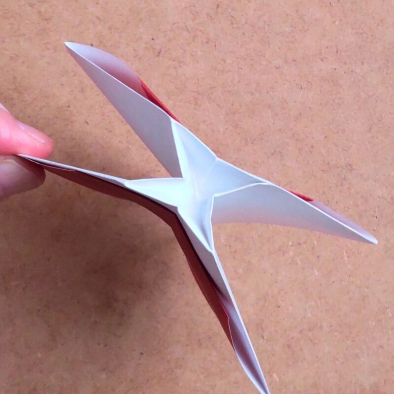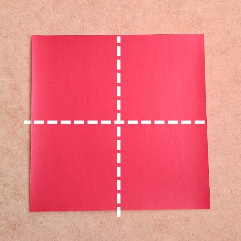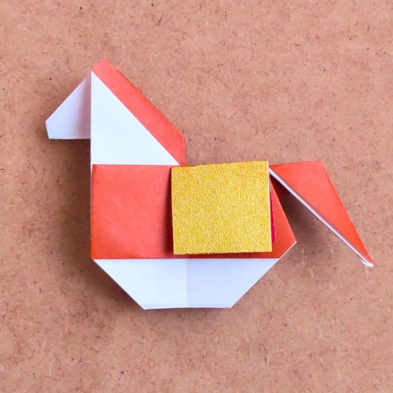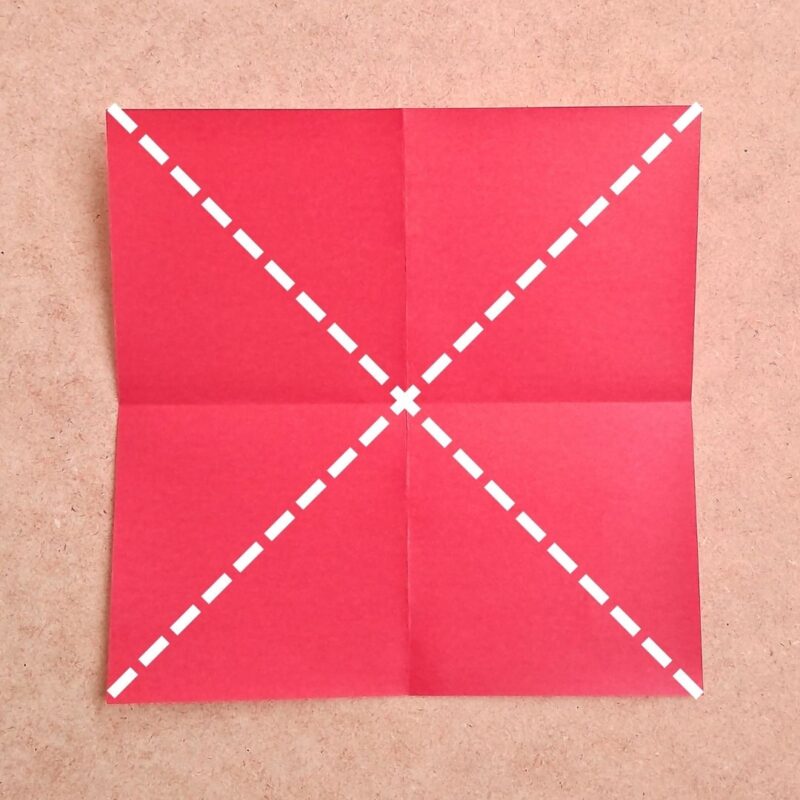 このおりがみの特徴は、初めに色のついている面から折ることです。