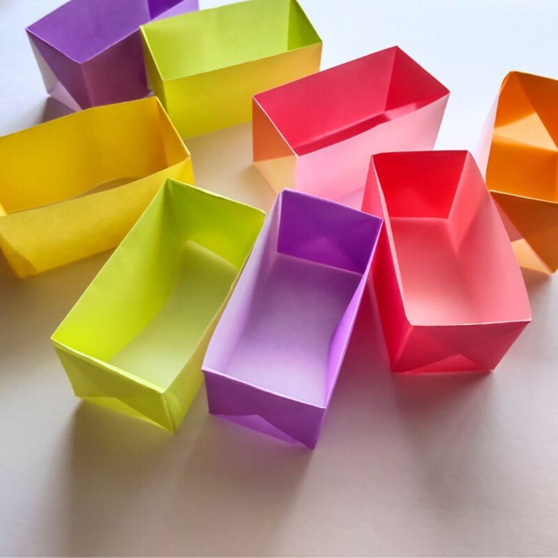 長方形の箱の折り方の紹介です。箱には様々な形がありますが、長方形の箱に挑戦しました。使い勝手のいい箱です。