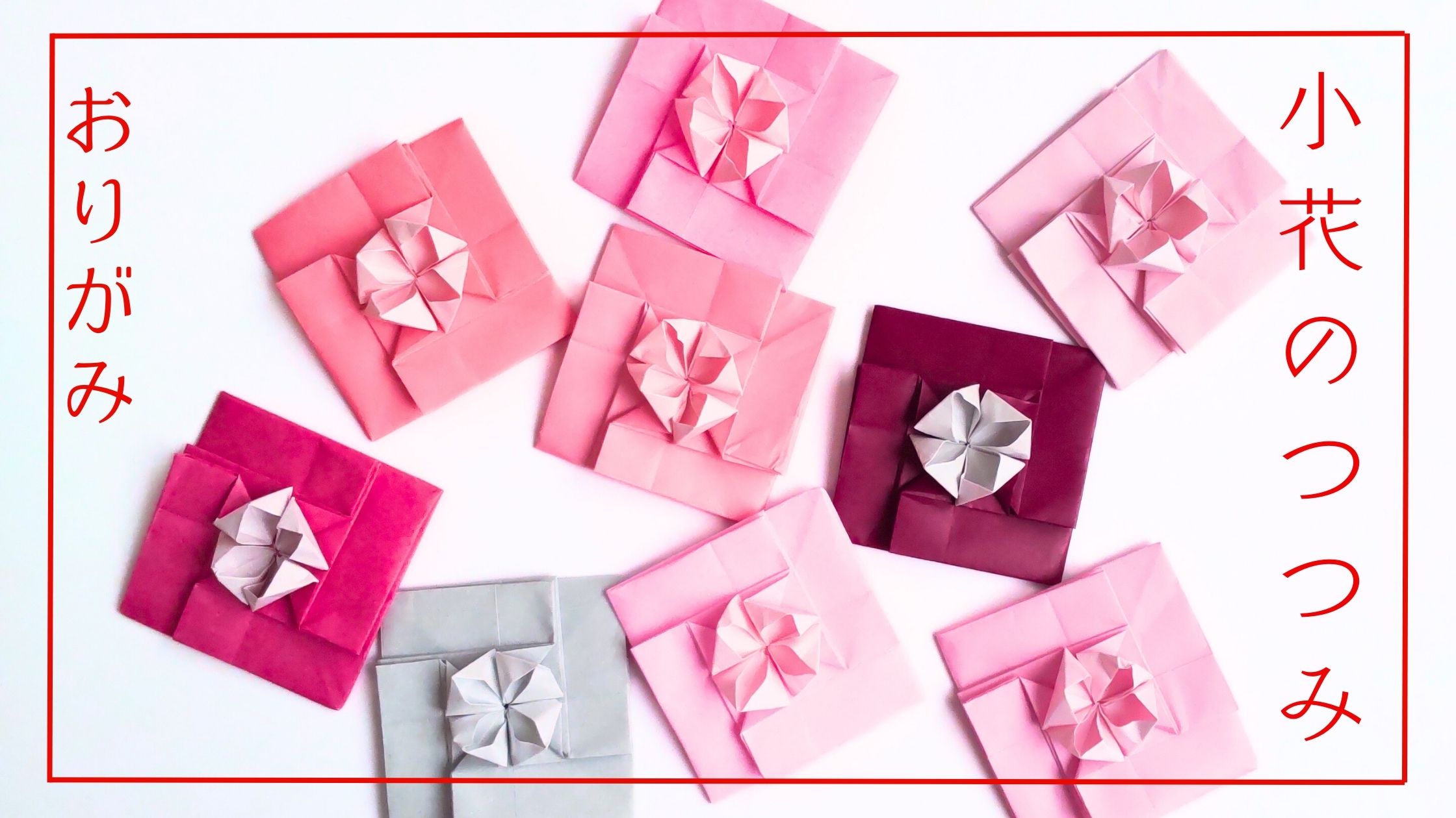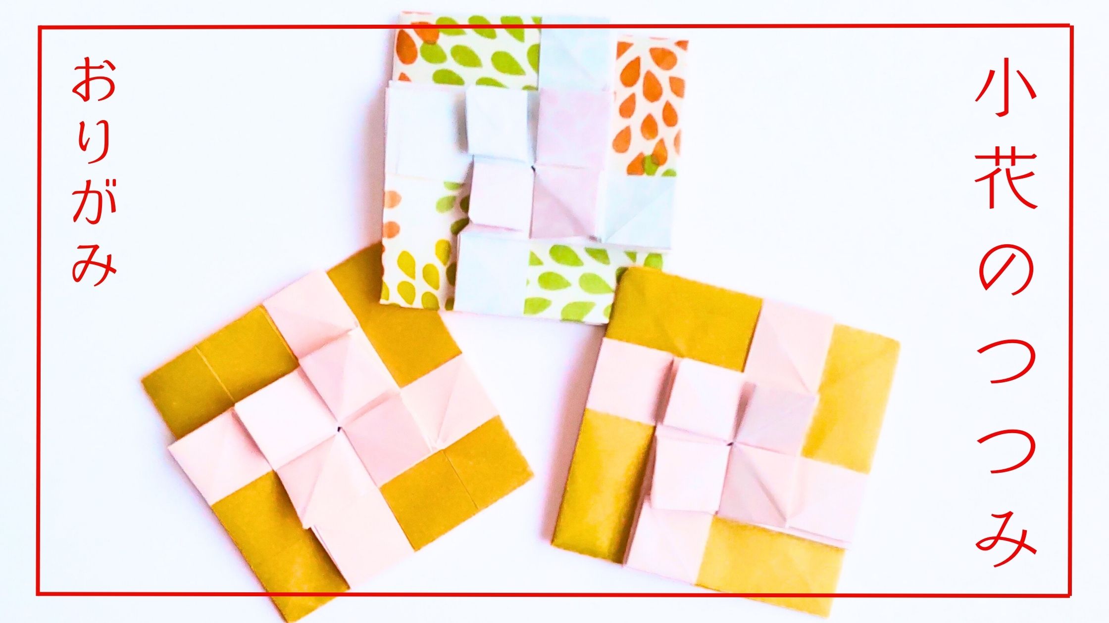 手のひらに乗る小さな包みは中央に小花が咲いています。