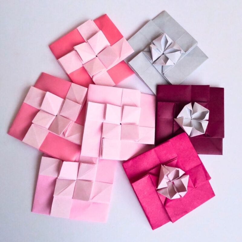 作り方はいたって簡単で、同じ折り方で4つのパーツを作ったら組み合わせます。