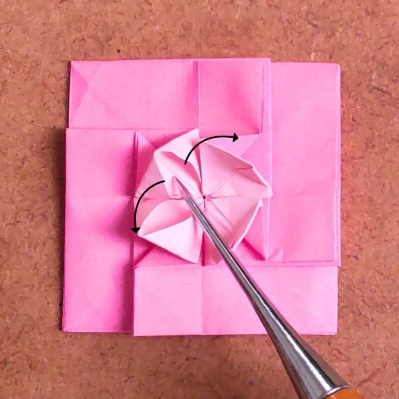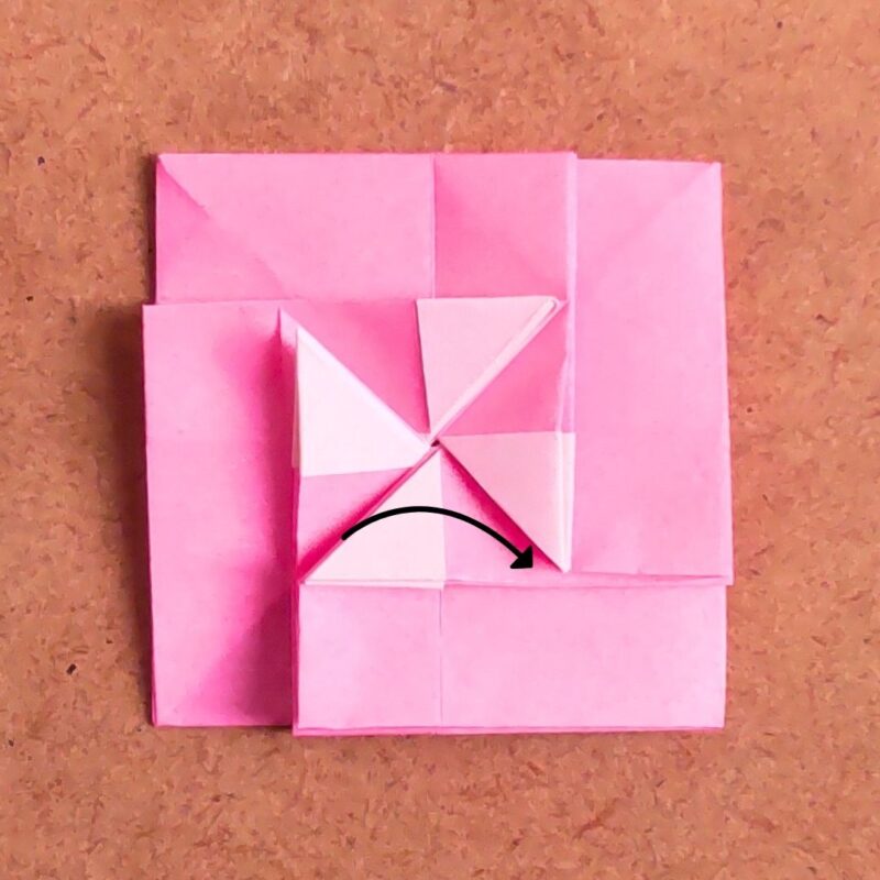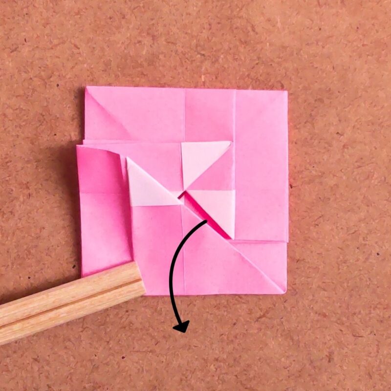 四つ目の三角は隠れているので、そっと起こして四角にします。