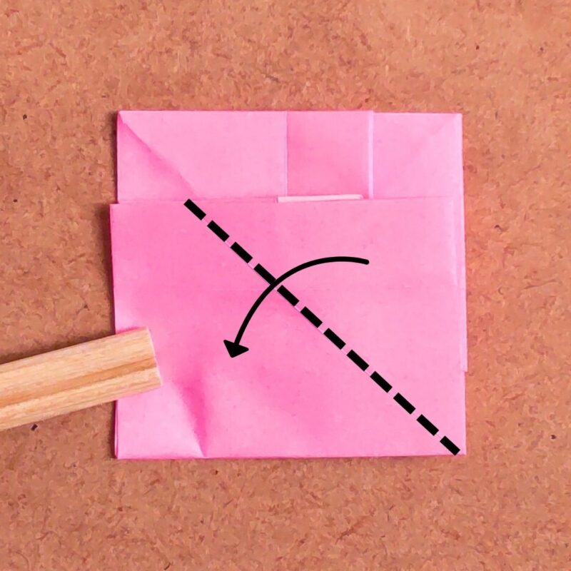 正方形になるまで繰り返したら、最後に斜め線を谷折りします。